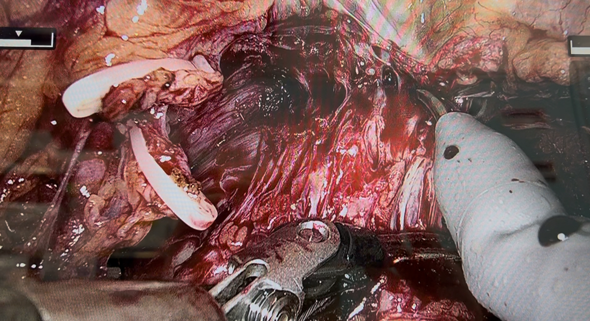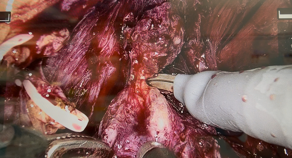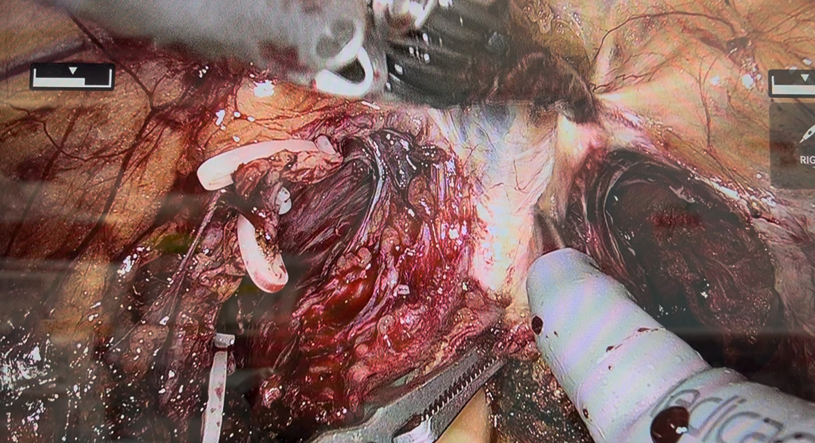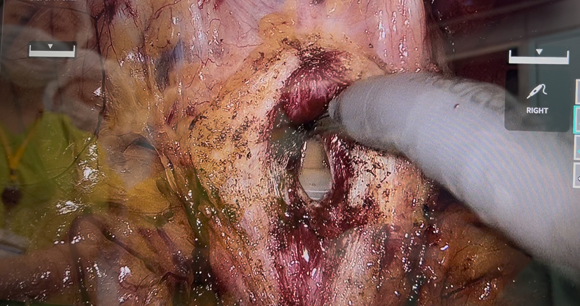 尿道後面を切除しているところ。尿道と前立腺尖部が離断されたことで、前立腺は無事摘除された。