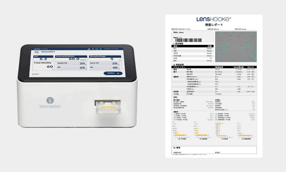 清潔容器に採取いただいた検体を速やかに解析します。精液量、精子濃度、総精子数、運動率 (全体・前進)、生存率、正常形態率を中心に、粘稠度や液化時間などの補助所見も加味して総 合評価します。同じ方でも日によってブレがあるため、必要に応じて複数回の測定も必要になる かもしれません。結果はWHO第6版(2021)基準に沿った解説書をお渡ししますので、ご参考にいただければと思います。